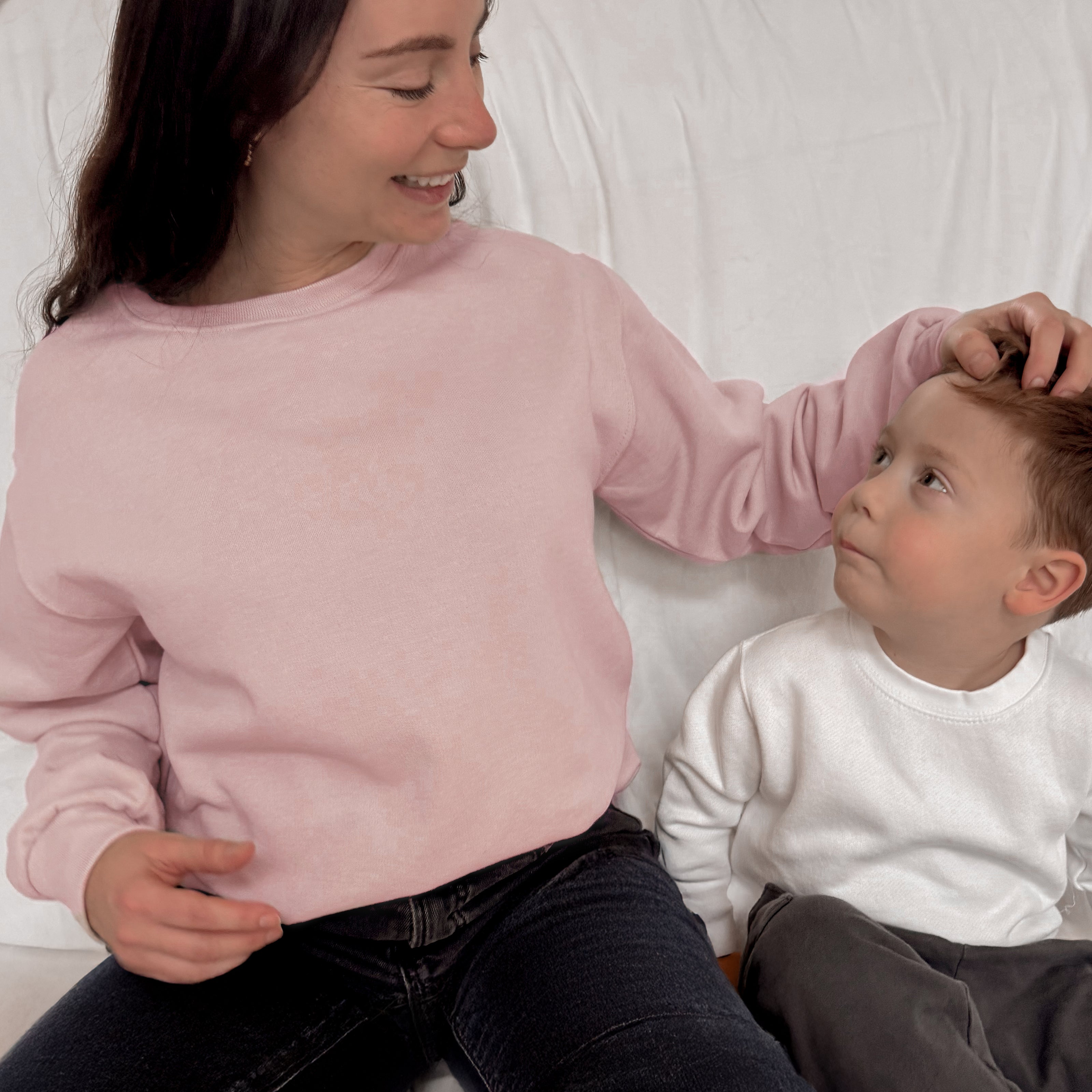Our sweatshirts are a super soft, lightweight cotton/poly in standard unisex sizes. Size up for an oversized fit.