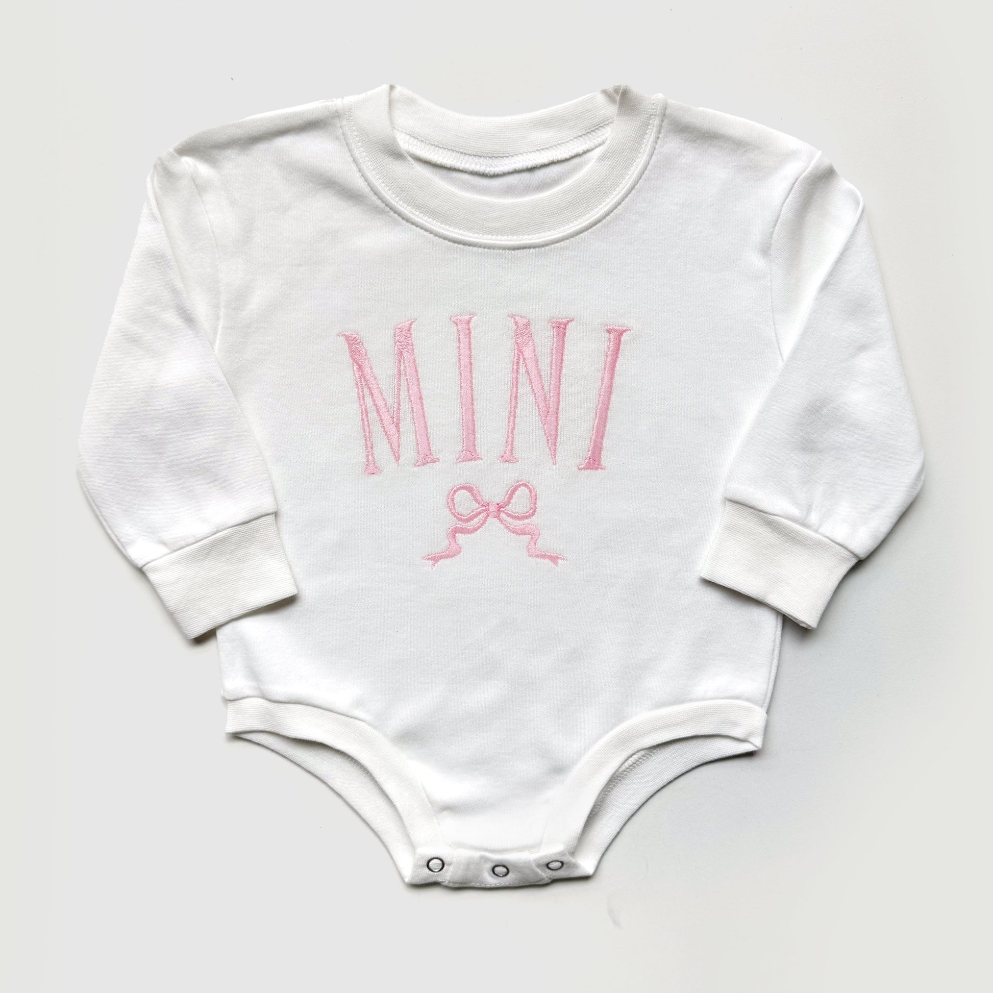 Celebrate your matching moment with our Mama + Mini embroidered set โ perfect for cozy days, baby showers, and family photos! This adorable set includes a fleece-lined Mama sweatshirt for mom and a soft Mini baby bodysuit or bubble romper for your little one.